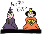ちょっと怖い感じがする右のイラストは形代(かたしろ)といいます。日本では、古来より身にふりかかろうとする災厄や穢れ(けがれ)をこの形代に移して川や海へ流すという習慣がありました。このお祓いの行事と平安時代頃に、宮中や貴族の女の子の間で始まったひいな遊びと言うお人形遊びとが結びついたのが、現在のひな祭のルーツといわれています。ちなみに雛人形の雛(ひな)には「小さな可愛いもの」という意味があります。