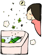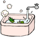 2.浴槽に水を溜め、菖蒲を入れて沸かします。 (給湯式の場合、はじめから菖蒲を入れておき、 あとからお湯を入れてください)