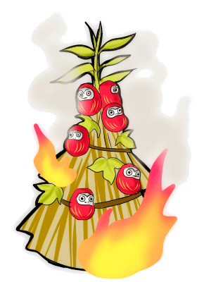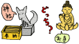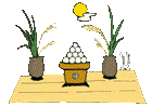 開け!モチ さて、鏡もちについて少し分かったところで、「鏡開き」のお話をはじめましょう。 「開く」というからには、鏡もちを手や小槌(金槌)で割るのが基本です。「うちには小槌なんて無いし、手じゃ固くて割れないから 包丁で切っちゃおう」なんて思ったあなた、いけませんよ〜。刃物で切るのは切腹を連想させる為、縁起が悪いとされているからです。頑張って割って、かき餅やお汁粉にしておいしくいただきましょう。 ちなみに、鏡開きと同じ日に、「蔵開き」という行事もあります。昔の商家では、この日に初めて蔵を開き、財産が増えるように祈っ たそうです。そして、この日から本格的に商売を始めたそうです。昔は随分ゆっくりとしていたものですね。 ●小正月(こしょうがつ)/1月15日