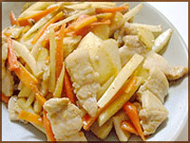 豚肉をフライパンが熱くならないうちから徐々に炒め、じゃがいも・にんじんを加えて炒める。 (※豚肉から油が出るので油は引かなくてよい)