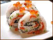 包丁をぬらしながらラップごと切る。仕上げにいくらを散らす。 |